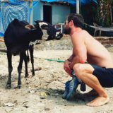 Chris Hemsworth has been giving followers a look into his family life - and a glimpse of his muscles - with his fun Instagram snaps. Just in time for Valentine's Day, the sexy star posted a shirtless photo of him puckering up to a cow with the hilarious caption, "Give us a kiss gorgeous."