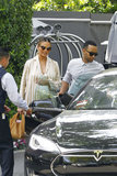 Chrissy Teigen seemed to be in good spirits when she stepped out for lunch with husband John Legend at Hotel Bel Air in Beverly Hills on Sunday afternoon. The model, who is expecting a baby girl, glowed in a sexy body-hugging dress complete with a striped coat, proving once again that she isn't letting pregnancy mess with her style game. At one point, John even put his courtly manners on display, opening the car door for his wife and waiting for her to get inside. We've seen the couple on more than a handful of cute outings together recently. Just a day before, Chrissy flaunted her bare belly during a shopping trip with John and her mom! Keep reading for more photos, and then check out Chrissy's best pregnancy snaps.